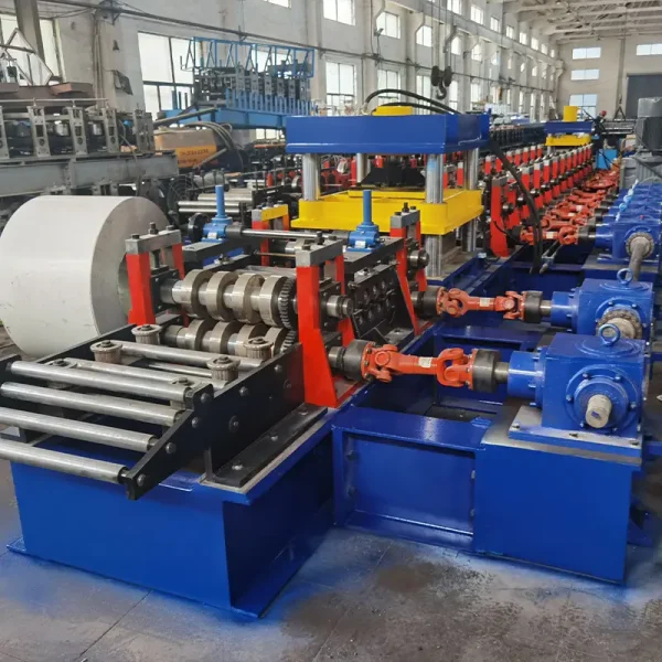 Highway guardrails provide a visual and physical barrier between traffic and work areas. It is used for protection against accidents due to lift trucks or other mobile equipment in dock areas, aisles, around special equipment. Reduce costly damage to equipment and inventory. Normally in Highway guardrails project, there would be such machines: two/three wave guardrail roll forming machine, U or C post roll forming machine, Connection punching line, End terminal punching line.