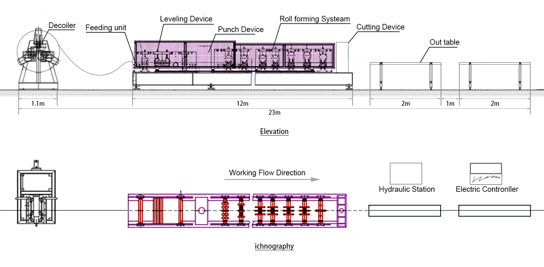 Uncoiling, feeding, roll forming, punching, cutting, etc process can be automatically